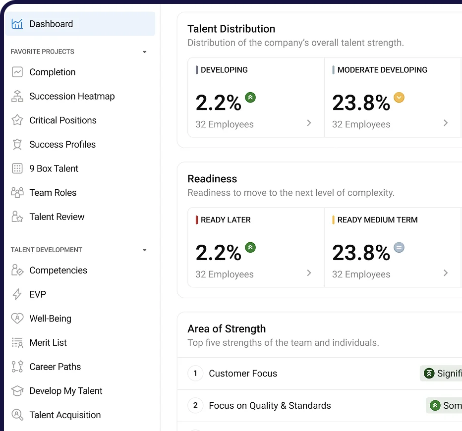 Real-time dashboards, 9-box reviews, HIPO tracking, and strategic workforce insights—all via the TalentIQ platform